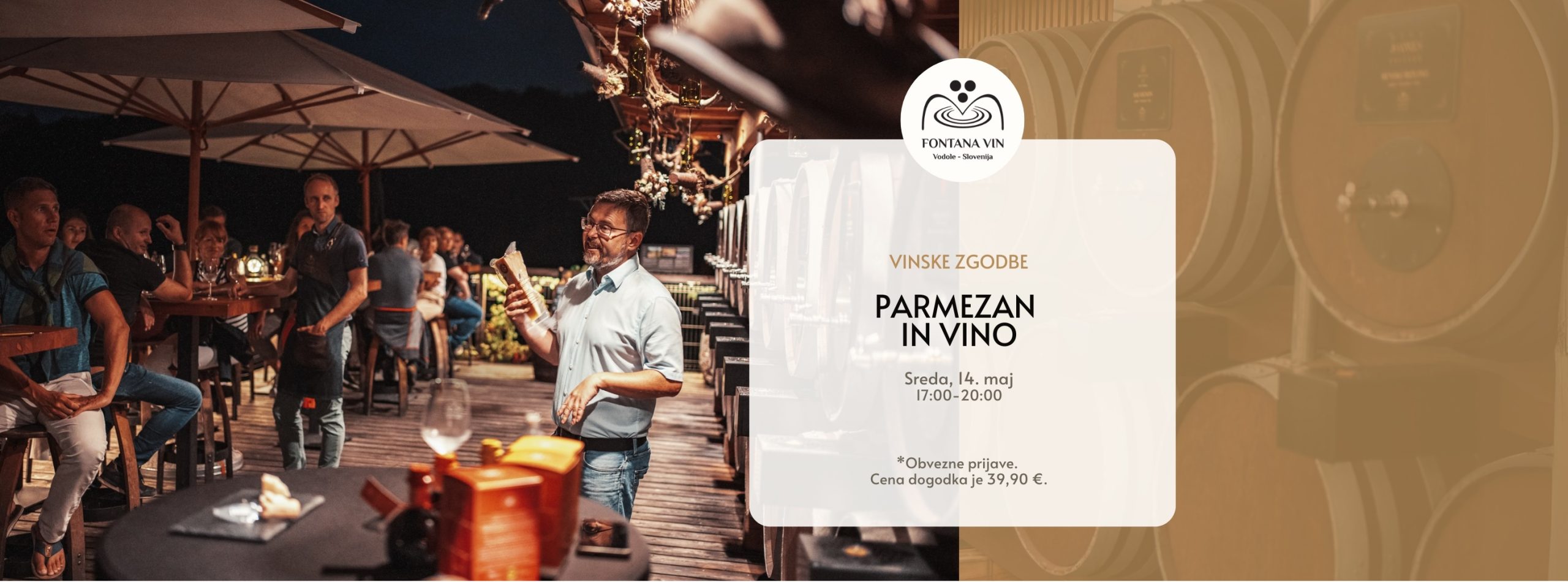 Vključuje: pijačo dobrodoŔlice, degustacijo osmih vrhunskih vin, Ŕest različnih vrst vrhunskih parmezanov, tri vrste staranega balzamičnega kisa, voden program.